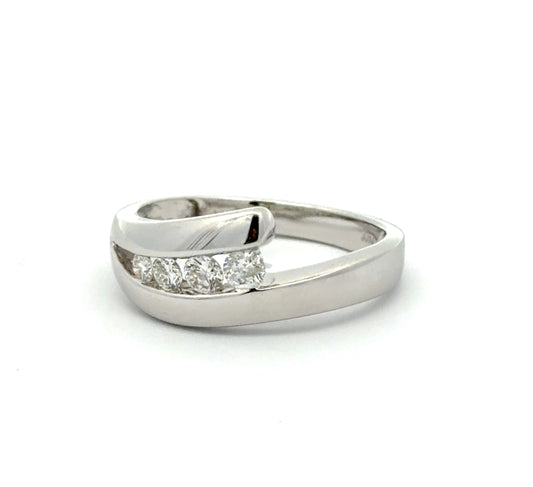 18K White Gold Princess-cut Diamond & Emerald Gemstone Bangle Bracelet
