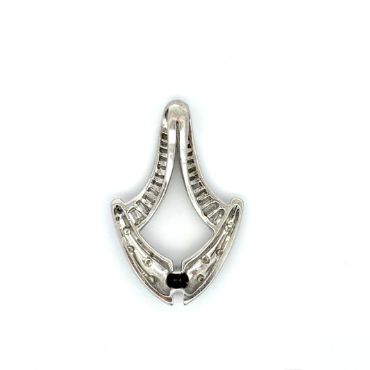 14K White Gold Black Diamond Baguette Wishbone Pendant