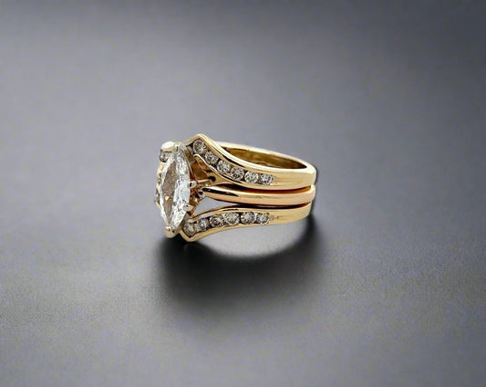 14K Yellow Gold Diamond Marquise Wedding Ring