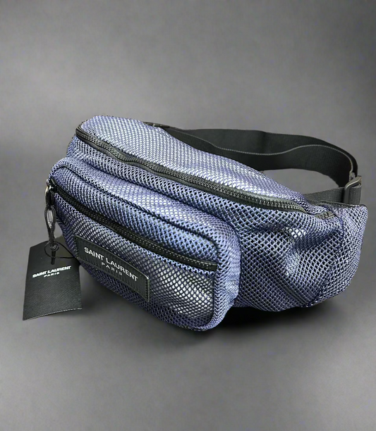 Saint Laurent Blue Nylon Mesh SLP Men's Crossbody Belt Bag