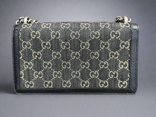 Gucci Jacquard Black Denim GG Monogram Small Dionysus Handbag