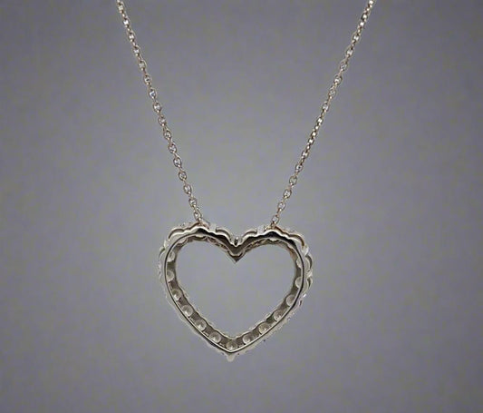 14K White Gold 1.25TCW Open Heart Diamond Necklace