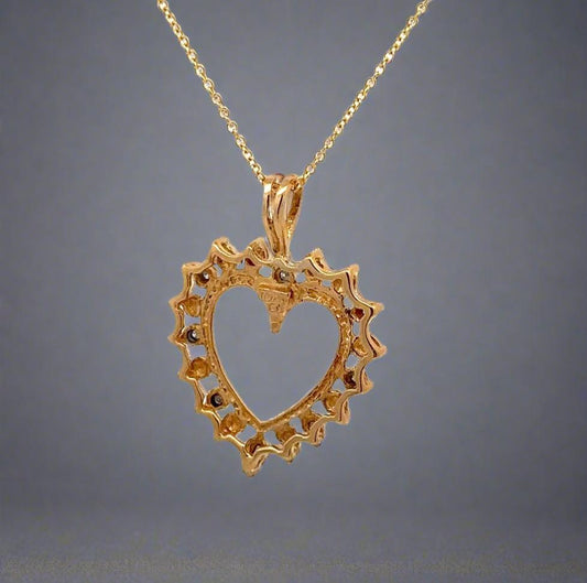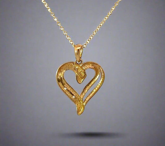 Yellow Gold Vintage Open Heart Diamond Necklace