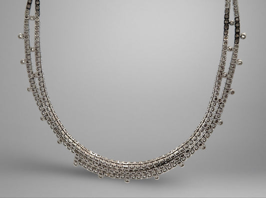 18K White Gold 12TCW Three-Row Waterfall Diamond Necklace