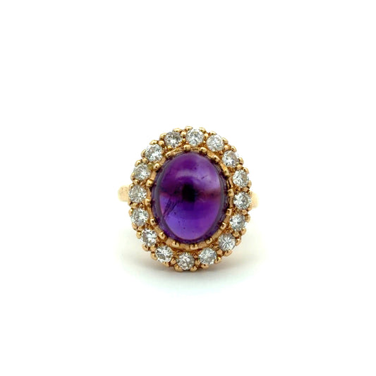14K Yellow Gold Amethyst Cabochon Diamond Cocktail Ring
