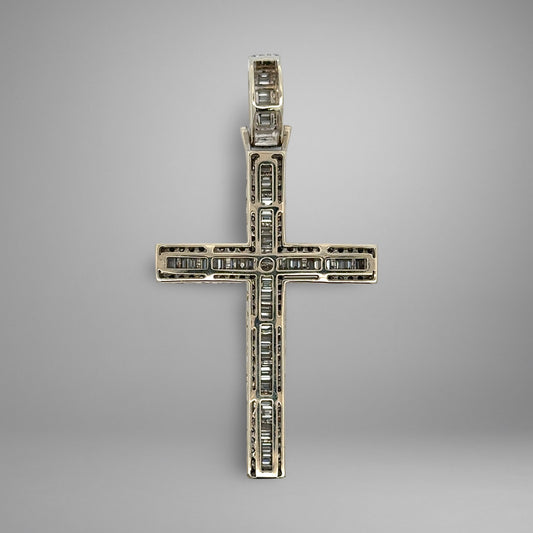 14K White Gold 3.2TCW Diamond Emerald Cross Pendant