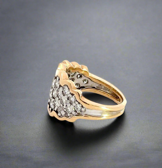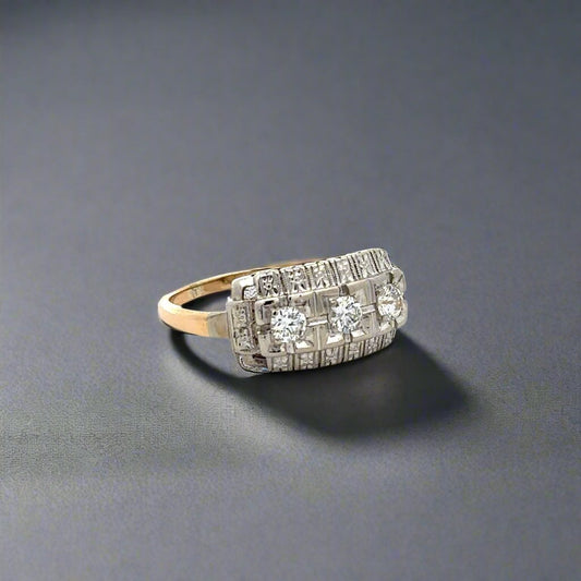 14K Two-Toned Yellow + White Gold Diamond Art Deco Fashion Ring