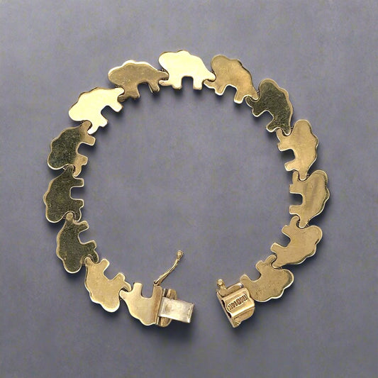 14K Tri Color Yellow, Rose, + White Gold Ladies Elephant Animal Bracelet