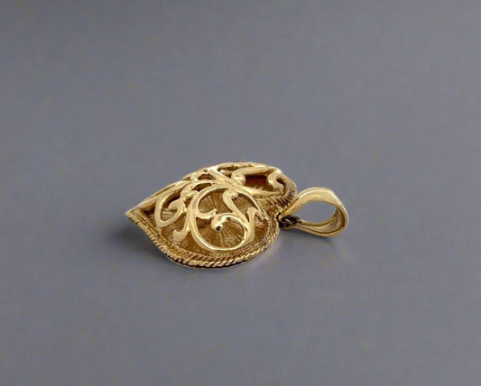 14K Yellow Gold Vintage Heart Pendant