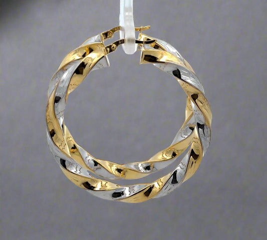 10K Two-toned Yellow and White Gold 1.7" Twist Hoop Earrings