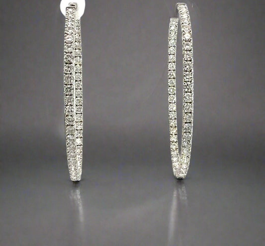 14K White Gold 7.6TCW Diamond Large Oval Inside-Out Hoop Earrings