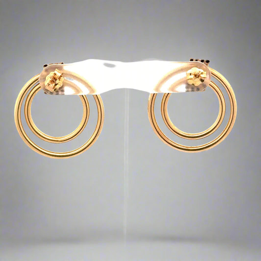 Aretes de mujer de oro amarillo de 14 quilates con doble círculo