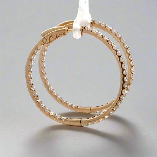 14K Yellow Gold 41.7mm 3.6TCW Diamond Inside-Out Hoop Earrings