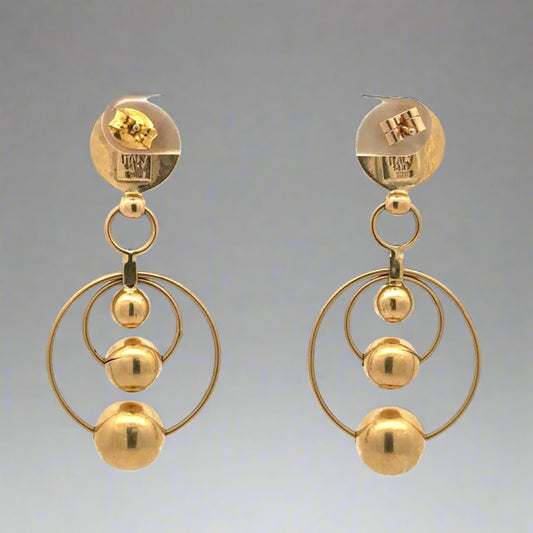 Pendientes colgantes con bola y anillo de oro amarillo de 14 quilates para mujer