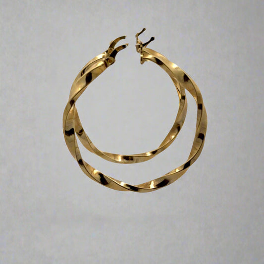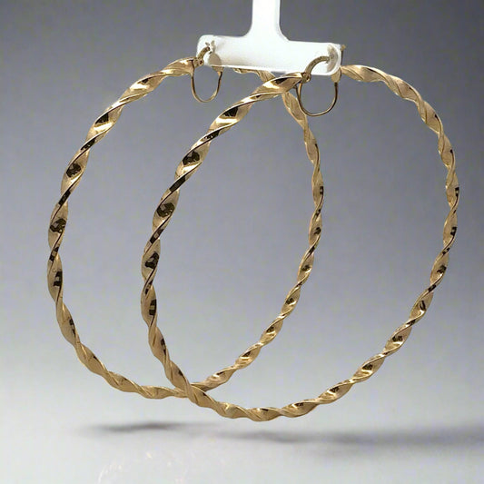 10K Yellow Gold XL 4" Twist Ladies Hoop Earrings
