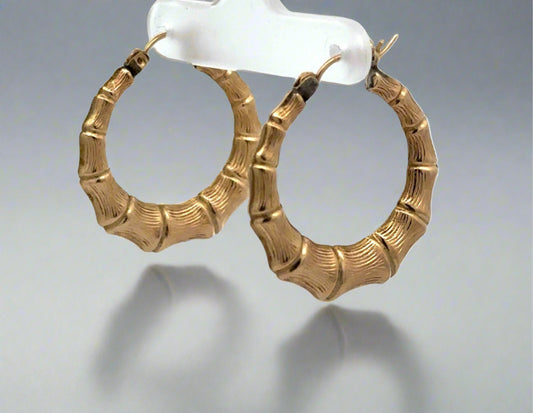 Pendientes de aro de bambú en oro amarillo de 10 quilates