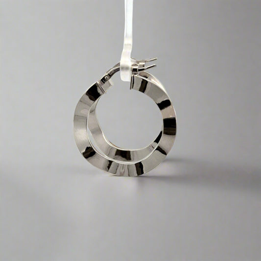 Pendientes de aro pequeños ondulados de oro blanco de 14 quilates