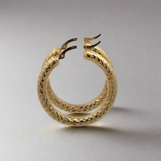 10K Yellow Gold 4mm Textured Polished Hoop Earrings