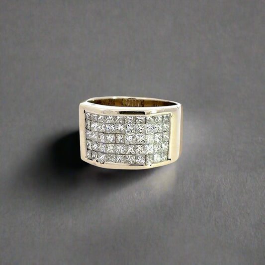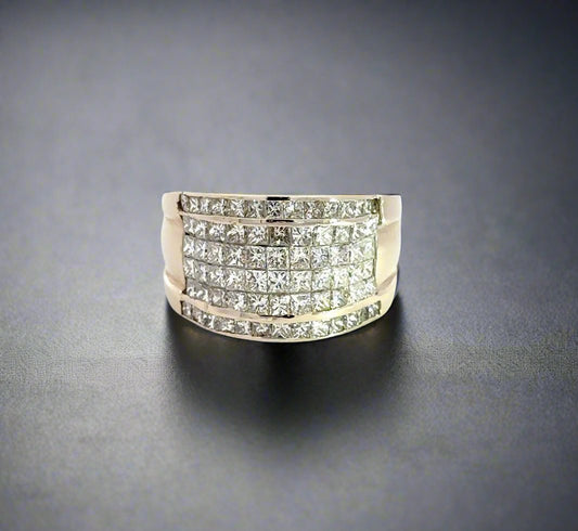 Anillo de oro blanco de 14 quilates con diamantes de talla princesa para hombre