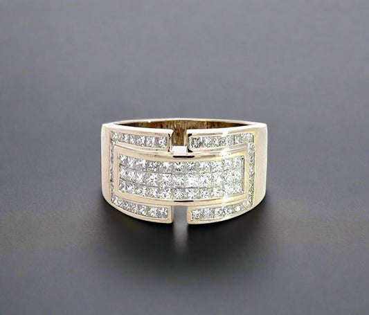 Anillo de oro blanco de 18 quilates con diamantes de talla princesa para hombre