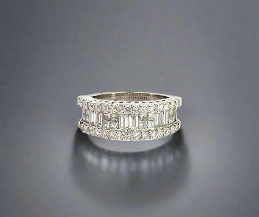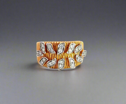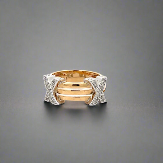 XX Anillo de banda de diamantes en oro amarillo + blanco de 14 quilates de dos tonos
