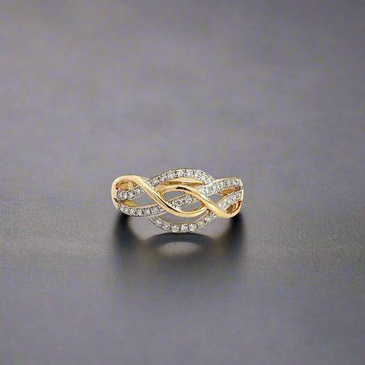 14K Yellow Gold .20TCW Diamond Crossover Ladies Fashion Band Ring