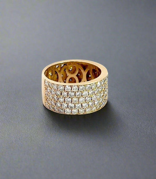 Anillo de eternidad con diamantes de 5 hileras para mujer, de oro amarillo de 14 quilates, 10,6 mm