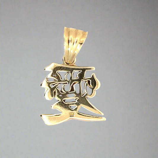 Colgante de diamantes de oro amarillo de 14 quilates con amor chino