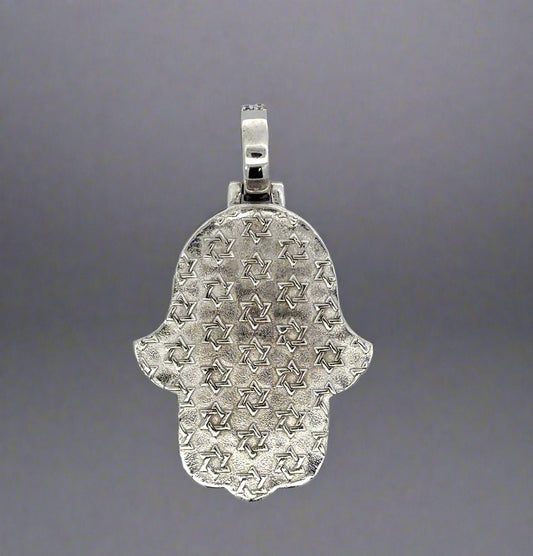 14K Solid White Gold 4.5TCW Diamond Hamsa Hand Unisex Pendant