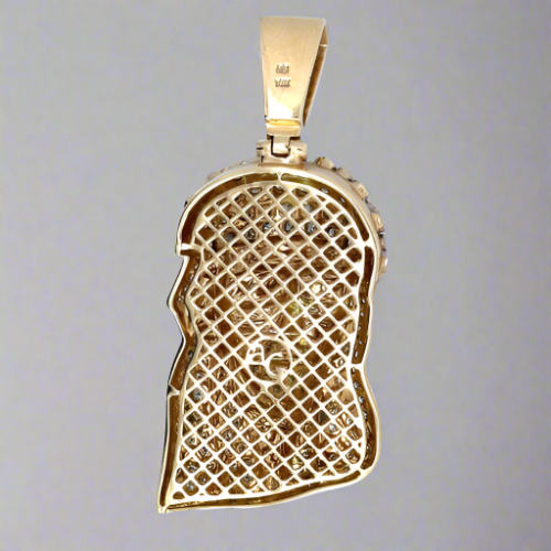 10K Yellow Gold 3TCW Diamond Jesus Head Religious Pendant