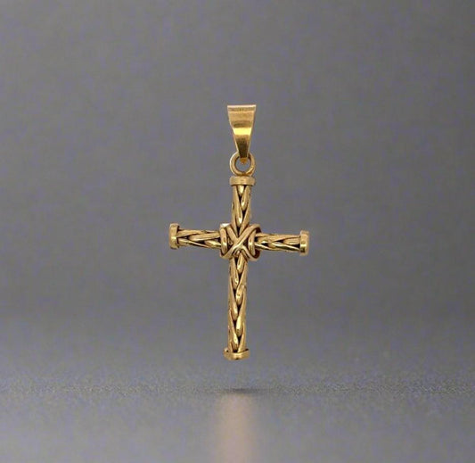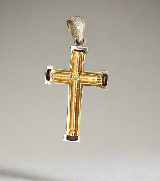 Colgante de cruz de oro blanco + amarillo de dos tonos de 14 quilates