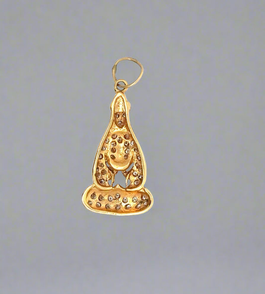 Colgante pequeño de meditación en oro amarillo de 18 quilates con diamantes