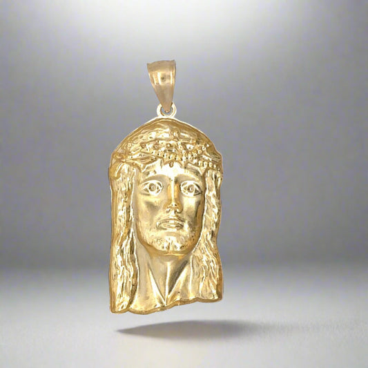Colgante unisex con cabeza de Jesús de oro amarillo de 10 quilates
