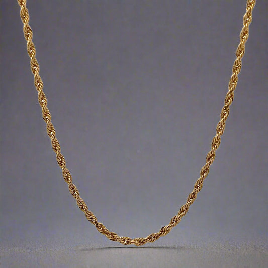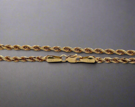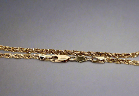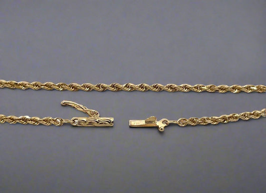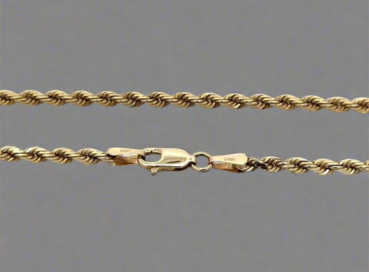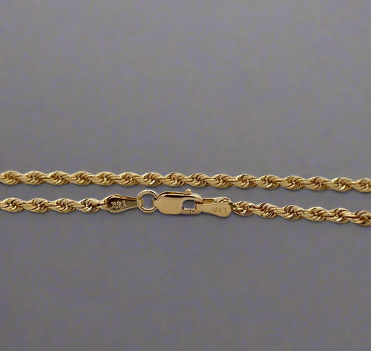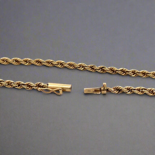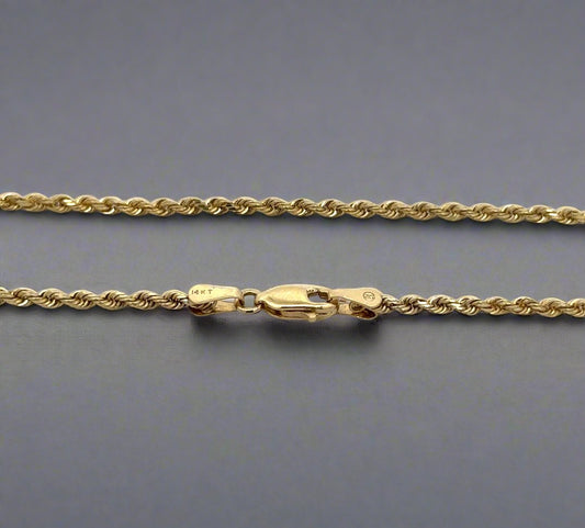 14K Solid Yellow Gold 24" 2mm Rope Chain