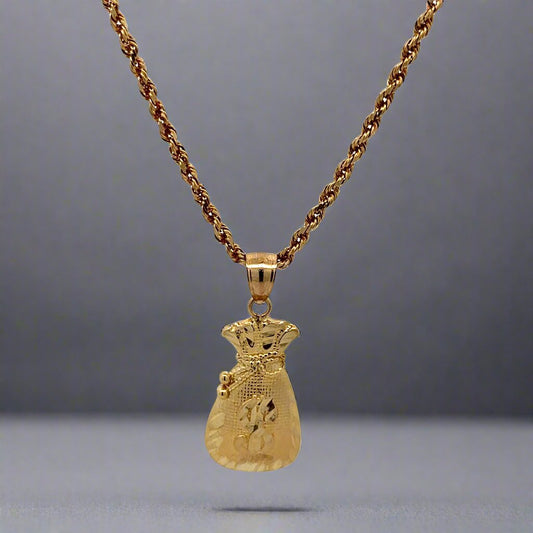 10K Yellow Gold Money Bag + Rope Unisex Necklace