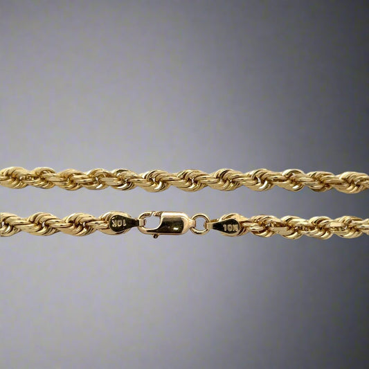 10K Solid Yellow Gold 21.75" 3.5mm Rope Chain