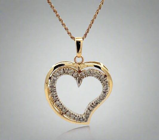 14K Yellow Gold .95CTW 23" Diamond Open Heart Necklace