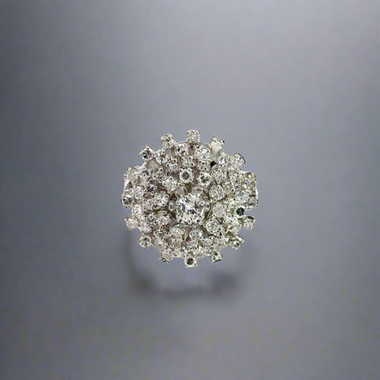 14K White Gold 2.3TCW Old-Mine Diamond Antique Cluster Fashion Ring